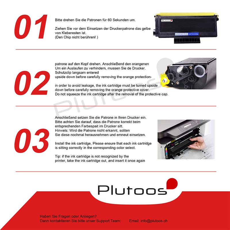 Tinten- und Tonerpatronen von Plutoos sind perfekt auf die kompatible Hardware abgestimmt und liefern so störungsfrei jederzeit exzellente Druckqualität. Plutoos legt Wert auf hochwertige Verarbeitung, belastbare Materialien, exakte Passgenauigkeit und eine sehr gute Druckqualität.