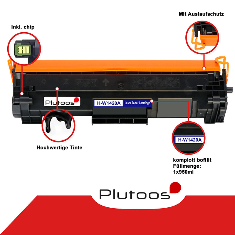 Plutoos Toner W1420A Alternatif à HP 142A compatible, noir- une qualité supérieure à un prix abordable.