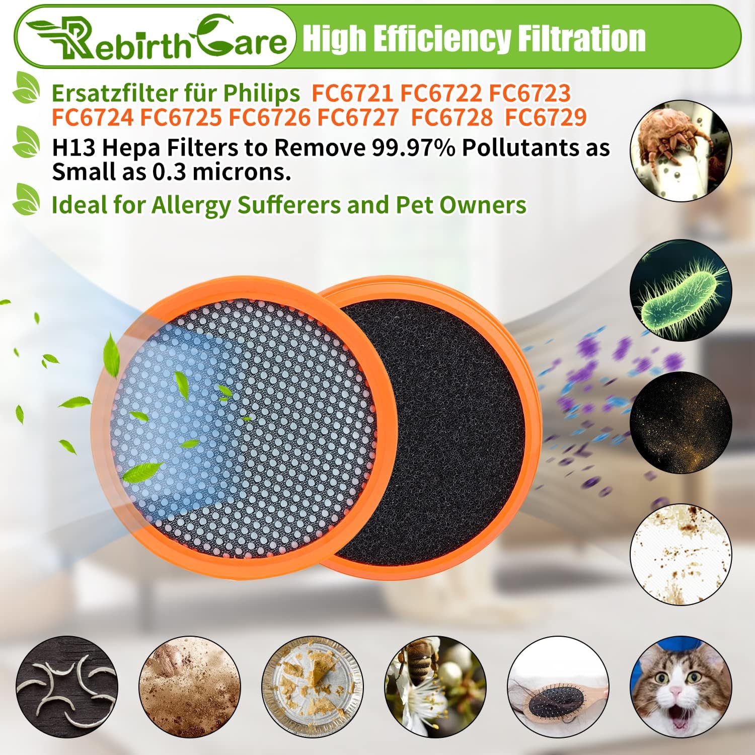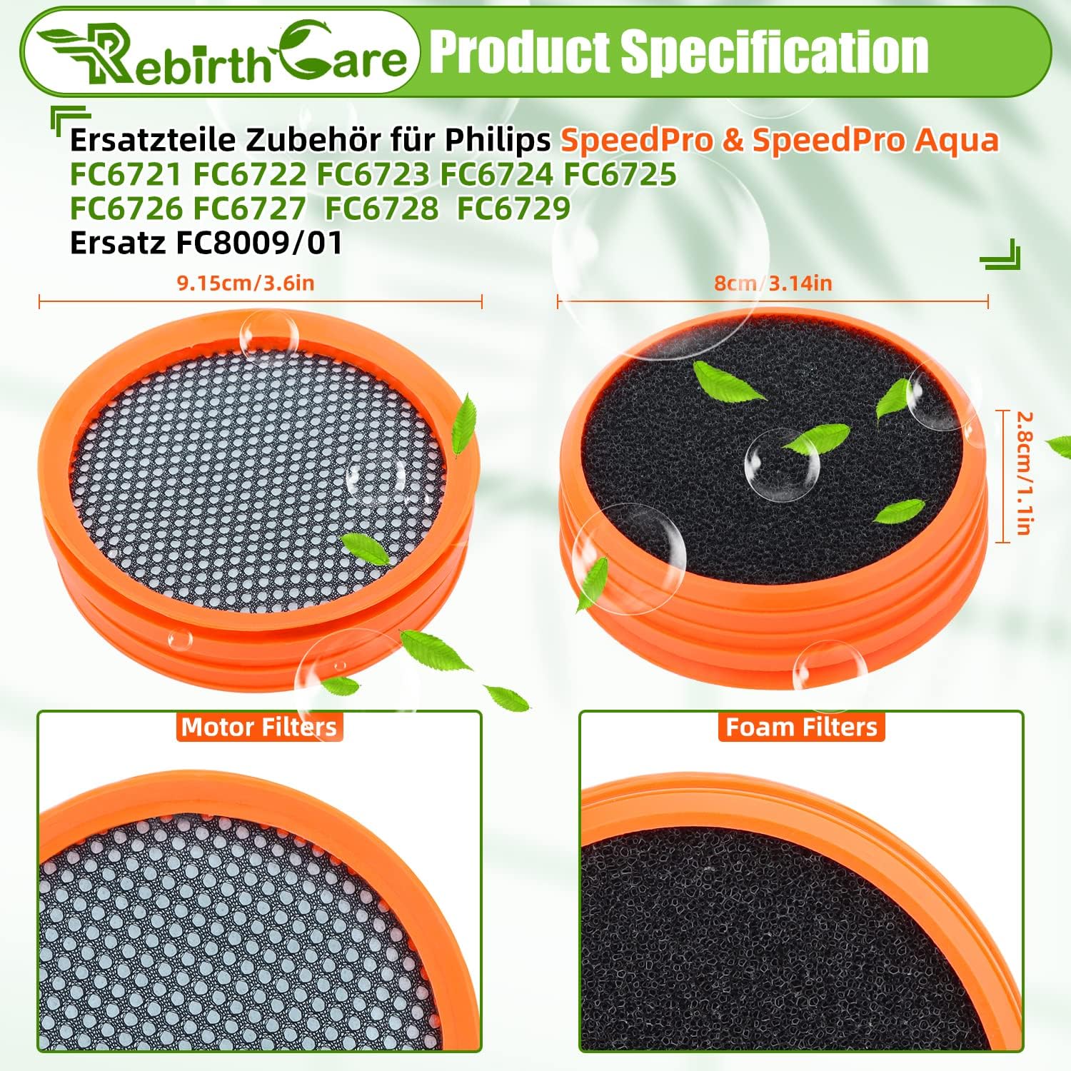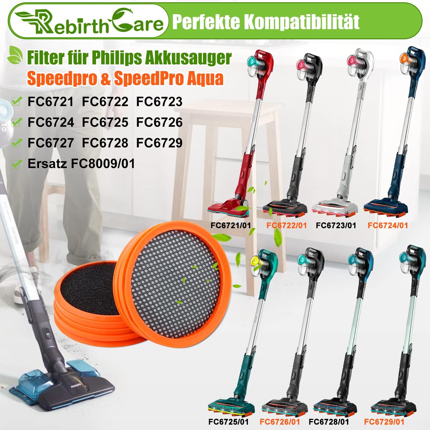 Plutoos 2 Stück FC8009 01 Filter für Philips Akkusauger SpeedPro & SpeedPro Aqua Ersatzteile