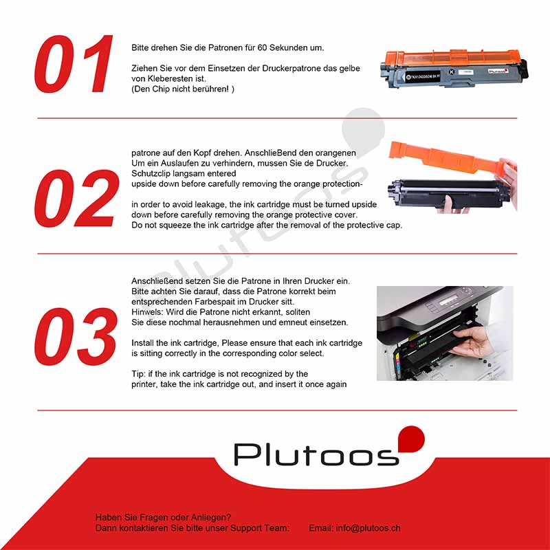 Le cartucce di inchiostro e toner di Plutoos si adattano perfettamente all'hardware compatibile e offrono quindi una qualità di stampa eccellente in qualsiasi momento e senza problemi. Plutoos pone l'accento su una lavorazione di alta qualità, su materiali resistenti, su un adattamento preciso e su un'ottima qualità di stampa.