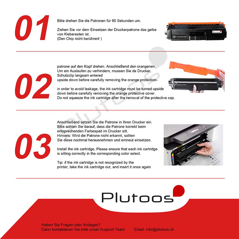 Tinten- und Tonerpatronen von Plutoos sind perfekt auf die kompatible Hardware abgestimmt und liefern so störungsfrei jederzeit exzellente Druckqualität. Plutoos legt Wert auf hochwertige Verarbeitung, belastbare Materialien, exakte Passgenauigkeit und eine sehr gute Druckqualität.