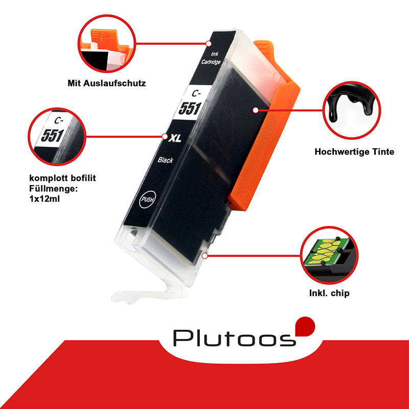 Plutoos CLI-551 Photoblack Druckerpatronen kompatibel zu Canon CLI551 6443B001