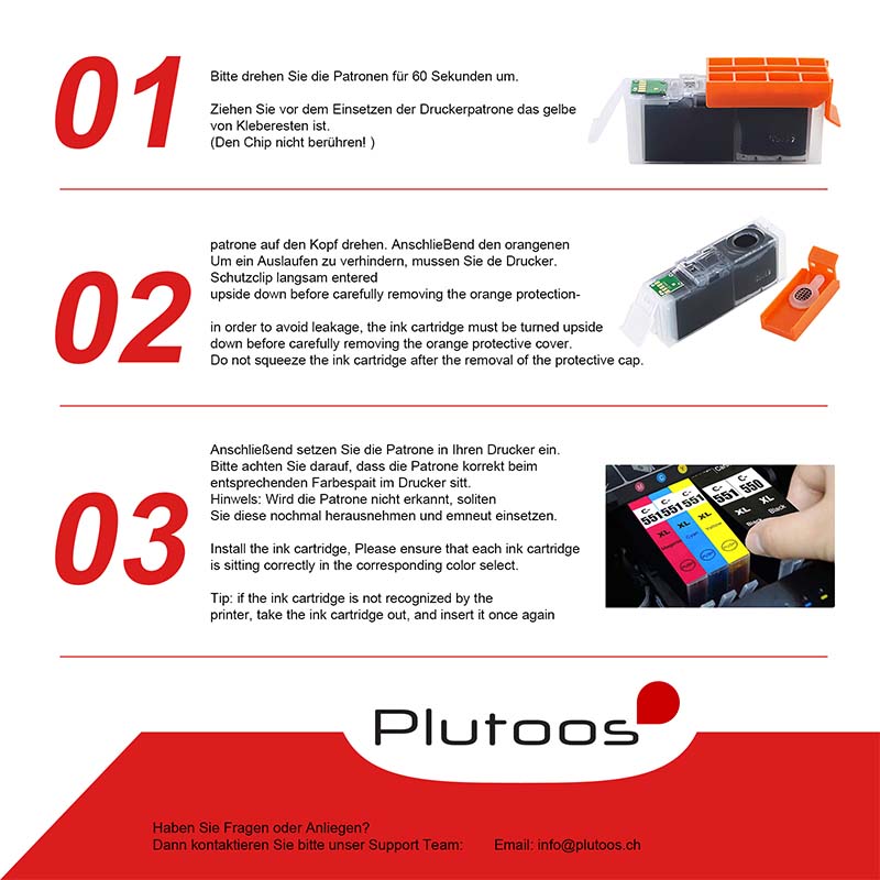 Tinten- und Tonerpatronen von Plutoos sind perfekt auf die kompatible Hardware abgestimmt und liefern so störungsfrei jederzeit exzellente Druckqualität. Plutoos legt Wert auf hochwertige Verarbeitung, belastbare Materialien, exakte Passgenauigkeit und eine sehr gute Druckqualität.