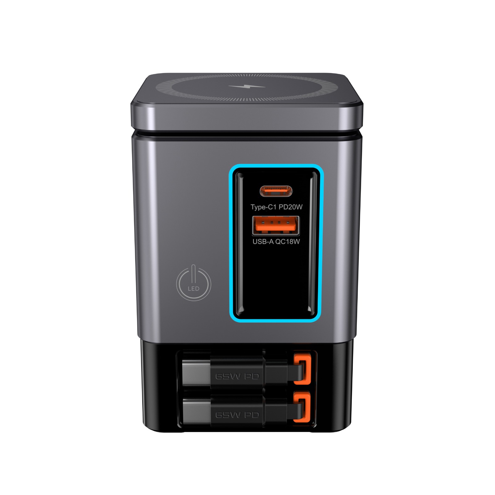- Mehrere Anschlüsse: USB-C PD, USB-A und kabellose Ladefläche – ideal für verschiedene Gerätetypen gleichzeitig.