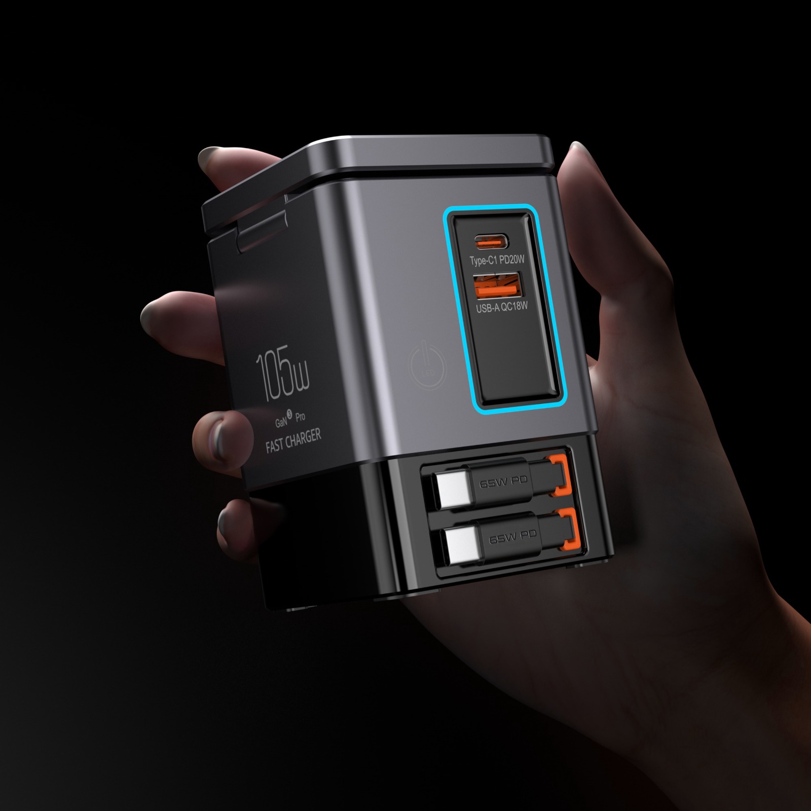 - Leistungsstarke 105 W GaN-Technologie: Fortschrittliche Galliumnitrid-Technologie (GaN) für schnelleres, effizienteres und sicheres Laden mit bis zu 105 Watt Gesamtleistung.