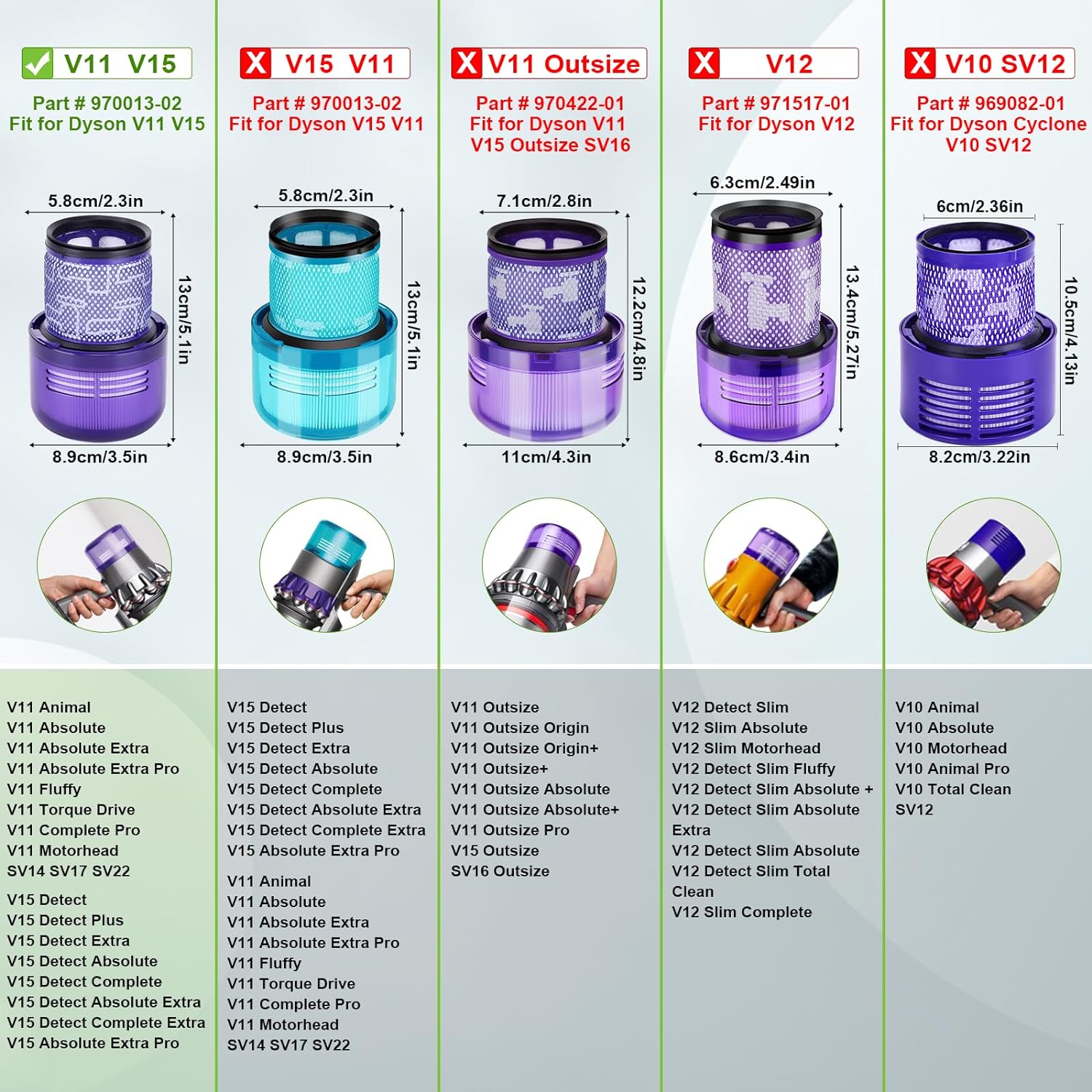 - Dyson V15 Series: V15 Detect, V15 Detect Absolute, V15 Detect Extra, V15 Detect Pro