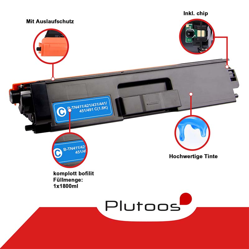 Plutoos TN-421C TN-423C Toner kompatibel zu Brother TN421 TN423 Cyan Mit Chip