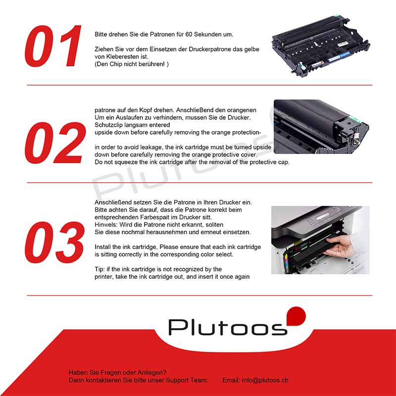 Tinten- und Tonerpatronen von Plutoos sind perfekt auf die kompatible Hardware abgestimmt und liefern so störungsfrei jederzeit exzellente Druckqualität. Plutoos legt Wert auf hochwertige Verarbeitung, belastbare Materialien, exakte Passgenauigkeit und eine sehr gute Druckqualität.