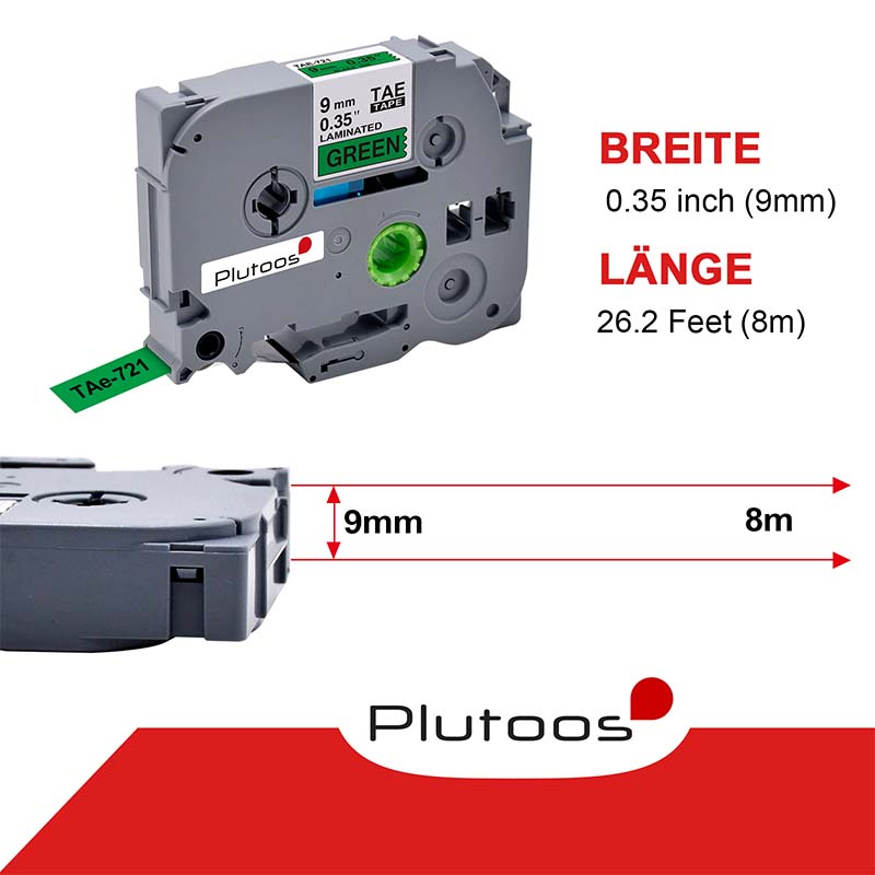 Plutoos - Brother P-Touch TZ-721 TZe-721 9mm kompatibel, TZ721 TZe721 - hochwertige Qualität zu einem erschwinglichen Preis.