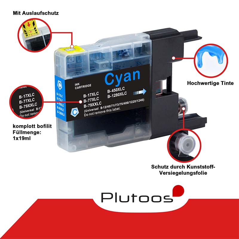 Plutoos LC-1280XL Cyan Druckerpatronen kompatibel zu Brother LC1280 XL - hochwertige Qualität zu einem erschwinglichen Preis.