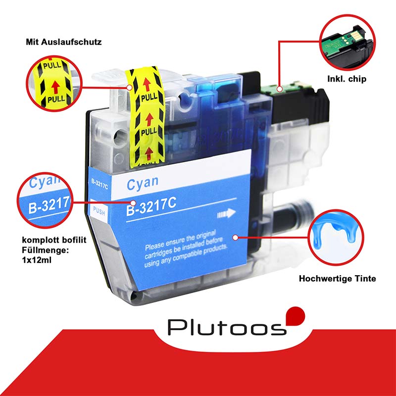 Plutoos LC-3217 Cyan Druckerpatronen kompatibel zu Brother LC3217 C - hochwertige Qualität zu einem erschwinglichen Preis.
