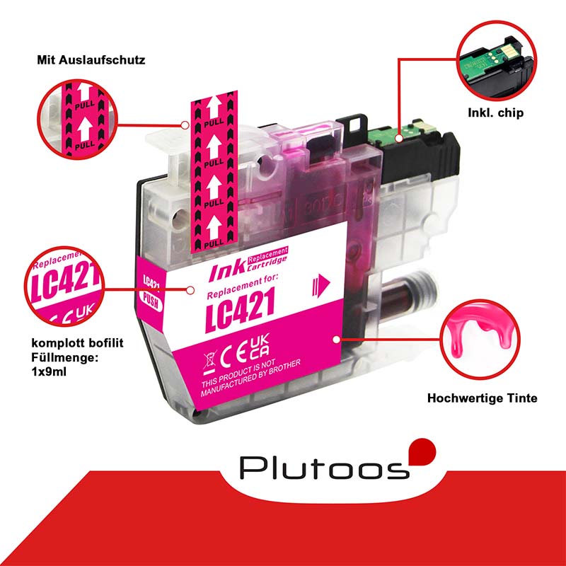 Plutoos LC-421 Magenta Druckerpatronen kompatibel zu Brother LC421 - hochwertige Qualität zu einem erschwinglichen Preis.