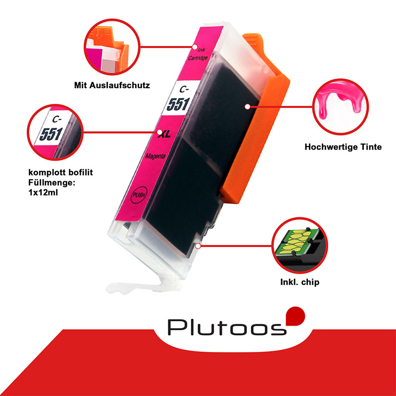 Plutoos CLI-551 Magenta Druckerpatronen kompatibel zu Canon CLI551 6445B001