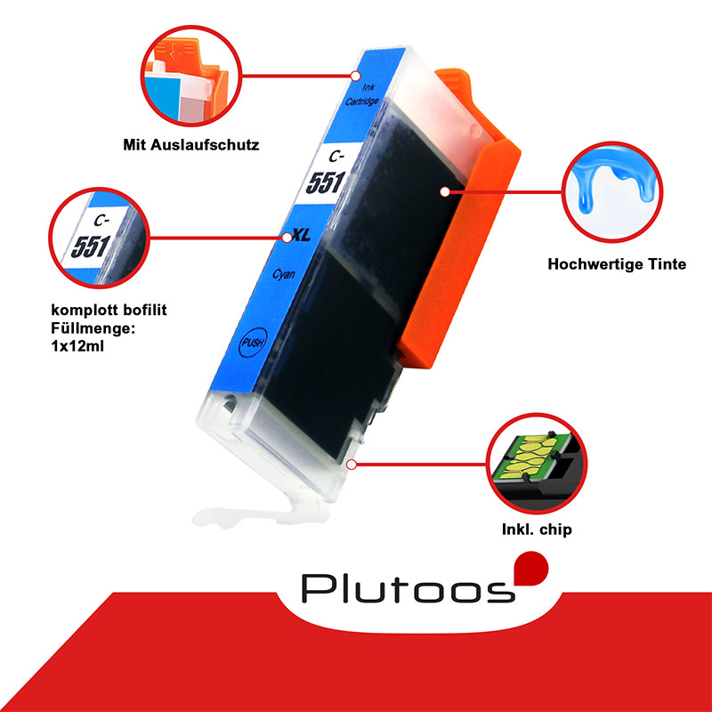 Plutoos CLI-551 Cyan Druckerpatronen kompatibel zu Canon CLI551 6444B001