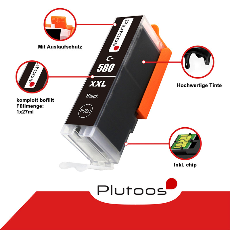 Plutoos PGI-580XXL Schwarz Tintenpatrone – Kompatibel zu Canon PGI-580 XXL 1970C001