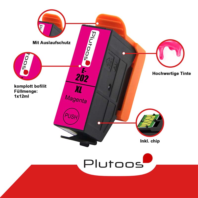 Plutoos 202XL Magenta Druckerpatronen kompatibel zu Epson 202 XL T02H34 - hochwertige Qualität zu einem erschwinglichen Preis.