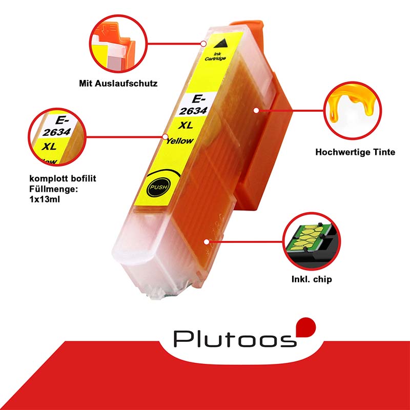Plutoos - Epson T2634 Patrone XXL kompatibel, Yellow (C 13 T 26344010) - hochwertige Qualität zu einem erschwinglichen Preis.