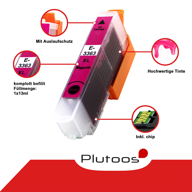 Plutoos T3363 Magenta Druckerpatronen kompatibel zu Epson 33XL C 13 T 33634012 - hochwertige Qualität zu einem erschwinglichen Preis.