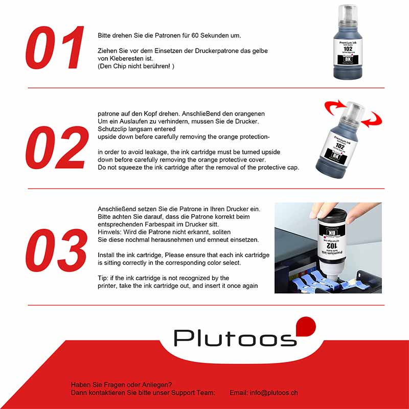 Plutoos 102 Ecotank Multipack Ink kompatibel zu Epson 102 Ecotank 4-Pack