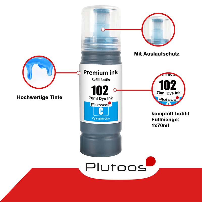 Plutoos 102 Ecotank Multipack Ink kompatibel zu Epson 102 Ecotank 4-Pack - hochwertige Qualität zu einem erschwinglichen Preis.