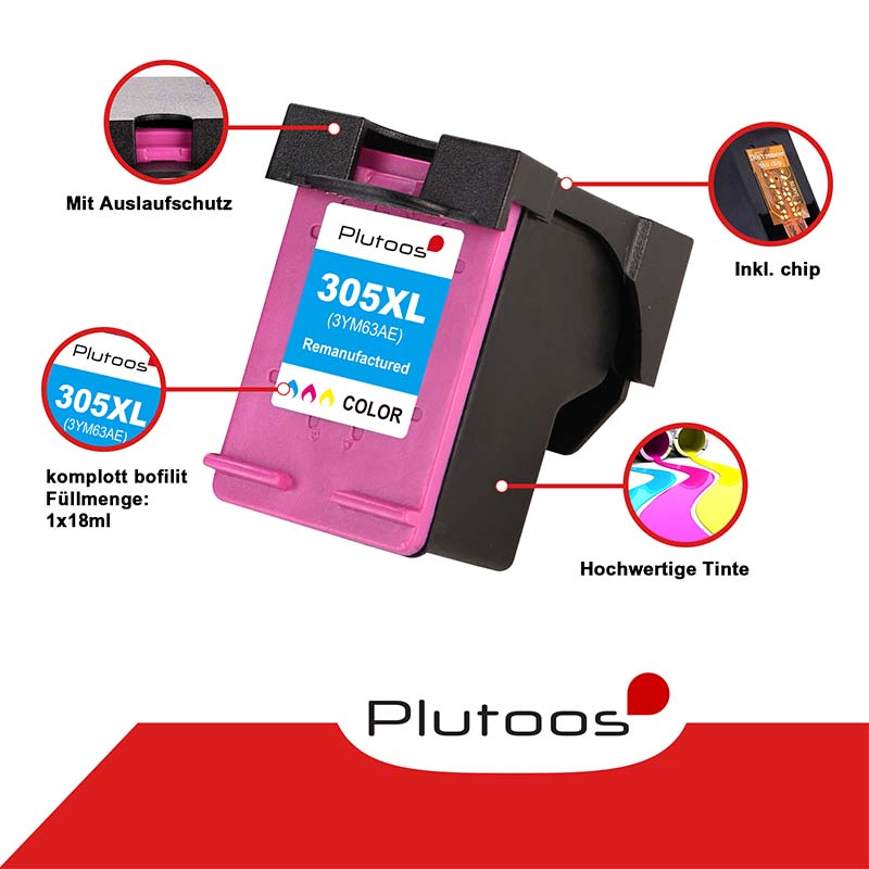Eigenschaften "Plutoos 305XL Color Druckerpatronen kompatibel zu HP 305 XL 3YM60AE (Original nur 5ml Unsere 18ml)"