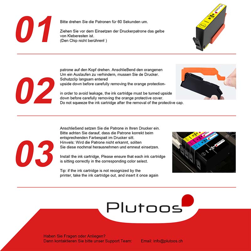 Tinten- und Tonerpatronen von Plutoos sind perfekt auf die kompatible Hardware abgestimmt und liefern so störungsfrei jederzeit exzellente Druckqualität. Plutoos legt Wert auf hochwertige Verarbeitung, belastbare Materialien, exakte Passgenauigkeit und eine sehr gute Druckqualität.