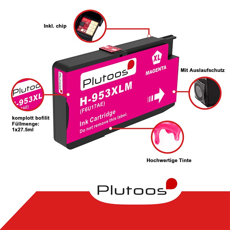 Plutoos 953XL Magenta Druckerpatronen kompatibel zu HP 953 XL F6U17AE - hochwertige Qualität zu einem erschwinglichen Preis.