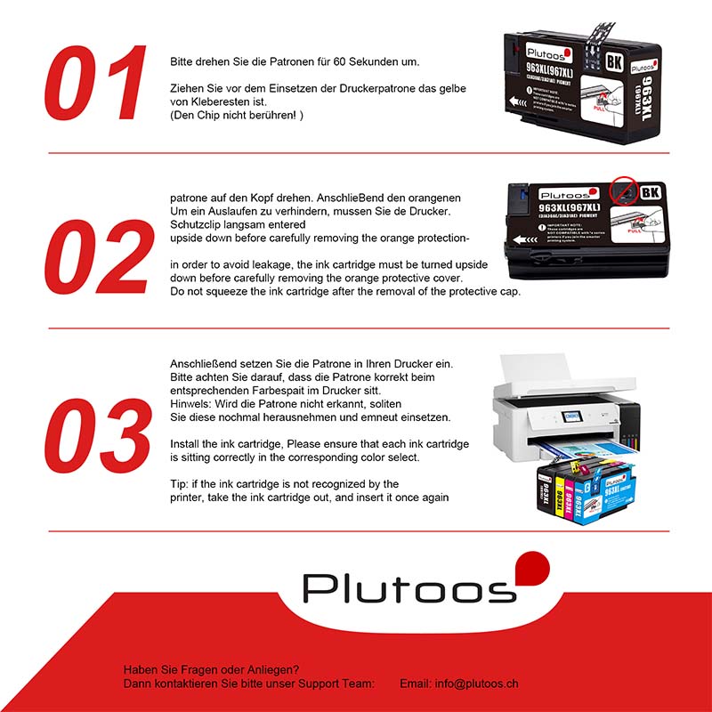 Wenn die Firmware Ihres Druckers auf dem neuesten Stand ist, kann es sein, dass keine nicht-originalen Patronen akzeptiert werden. Solche Firmware-Probleme lassen sich häufig durch ein Downgrade der Drucker-Firmware beheben – ausschliesslich auf eigene Entscheidung und Verantwortung. In diesen Fällen sind die Patronen nicht fehlerhaft.