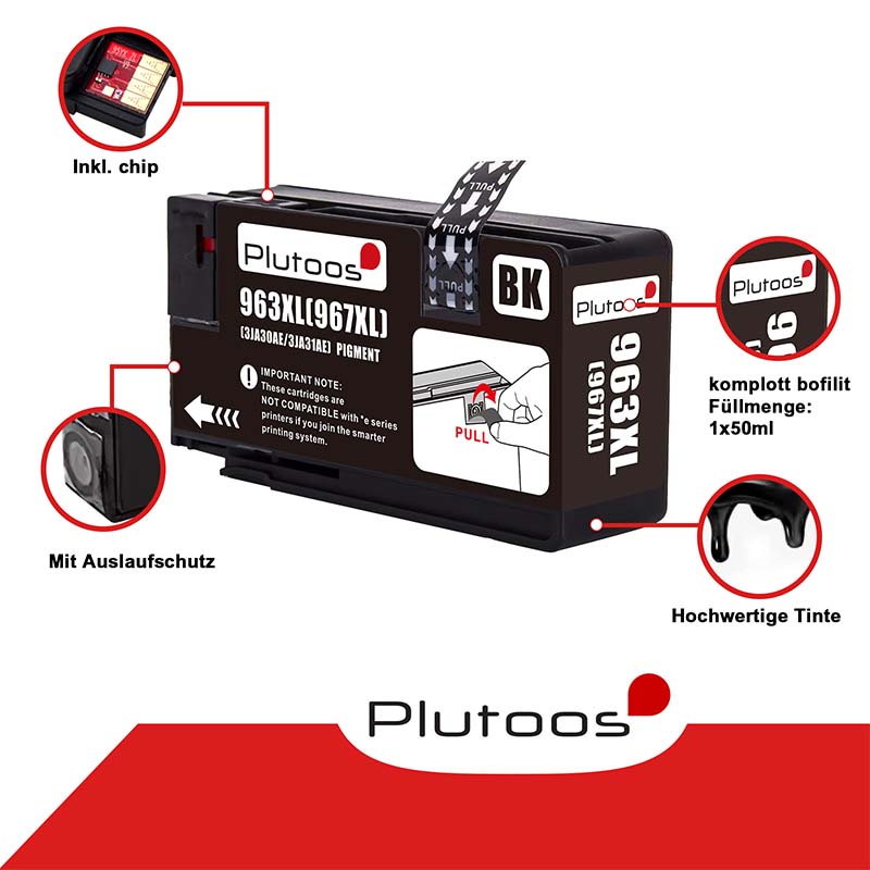 Plutoos 963XL Black Druckerpatronen kompatibel zu HP 963 XL 3JA30AE